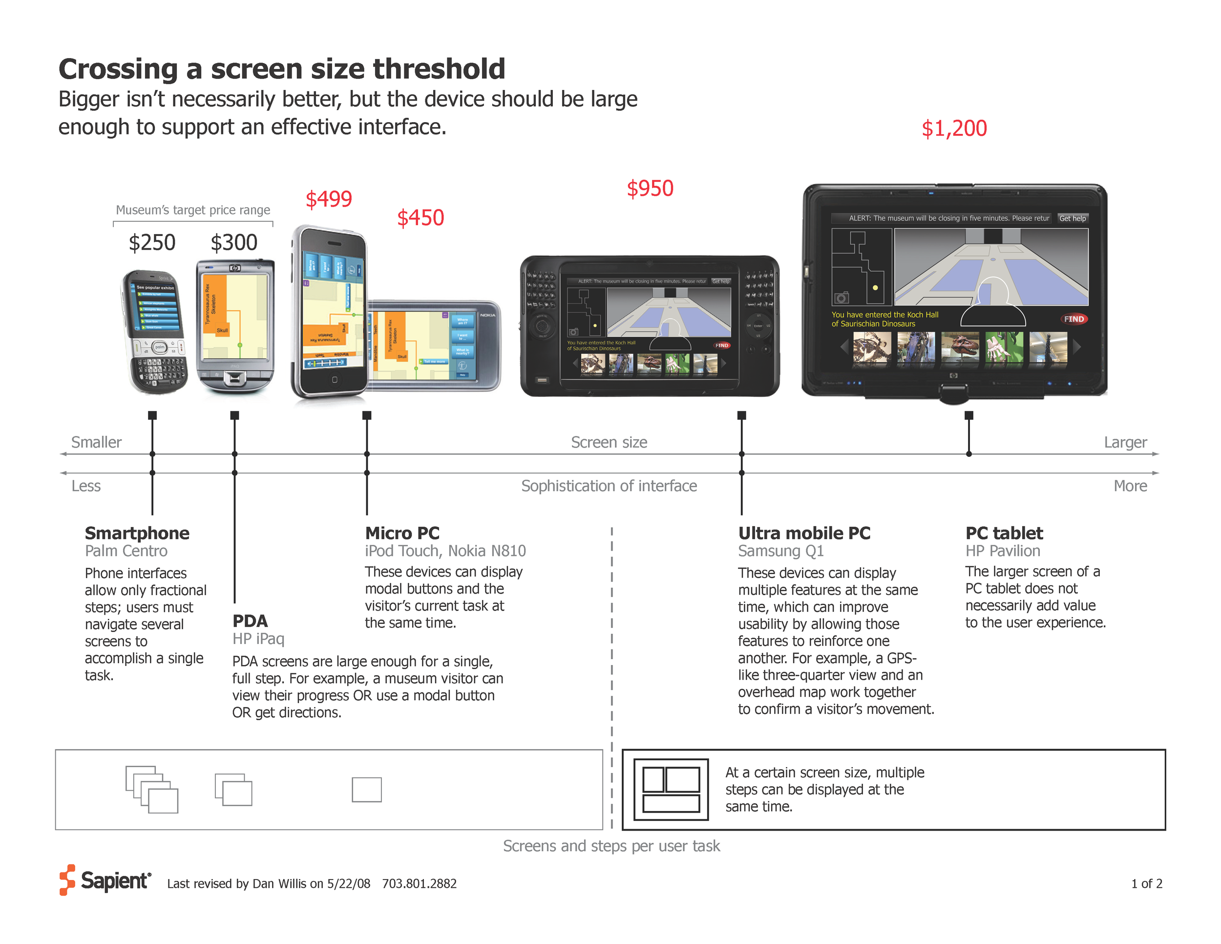 I assessed the handheld devices available at the time and plotted their value along a spectrum that had simple interaction at one end and sophisticated interaction at the other, arguing that only a sophisticated approach would be successful.